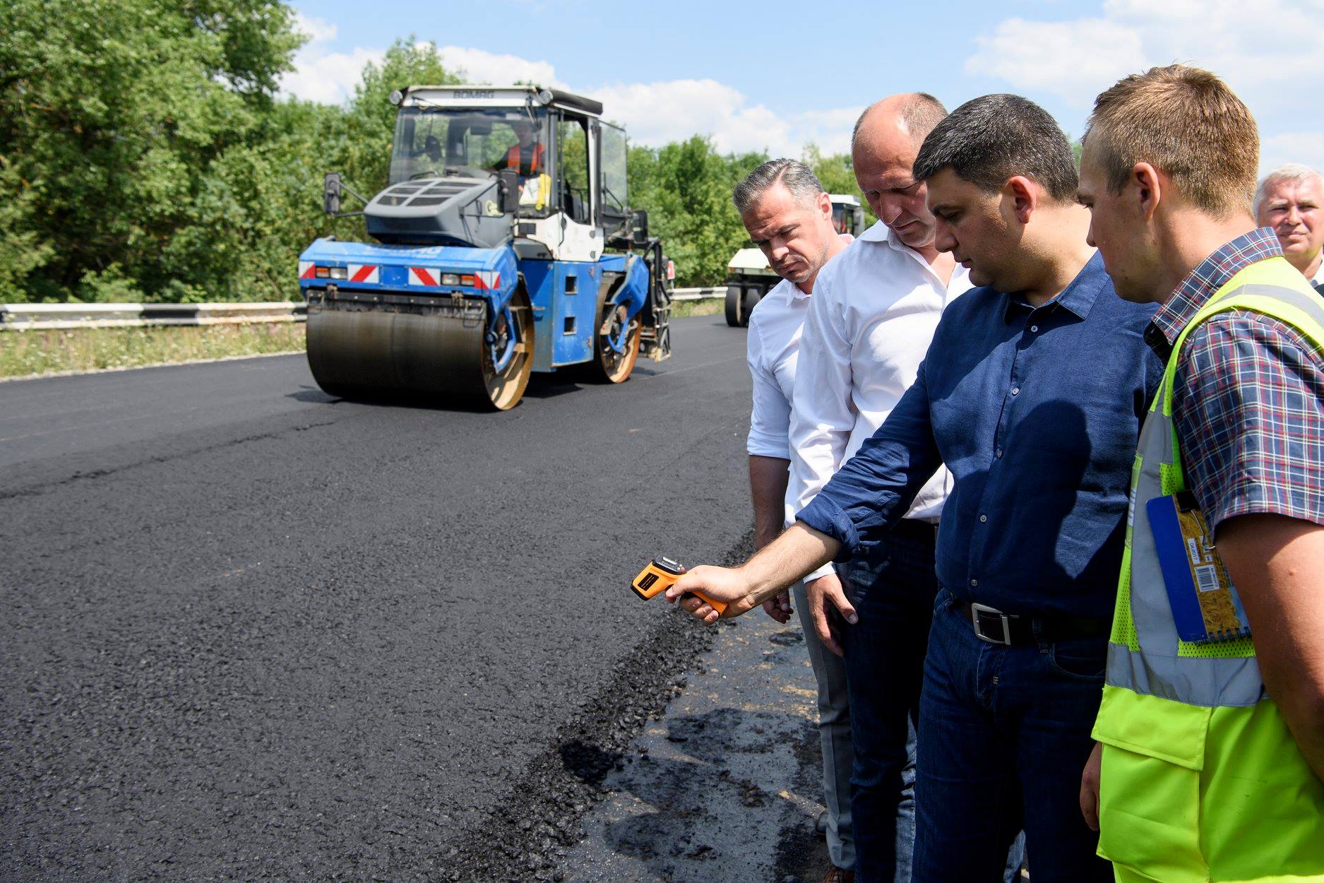 Прем’єр-міністр України Володимир Гройсман разом із керівником Державного агентства автомобільних доріг України Славоміром Новаком перевірили проведення дорожніх робіт у межах реалізації проекту транснаціонального коридору GО Highway у Вінницькій, Тернопільській, Хмельницькій областях.